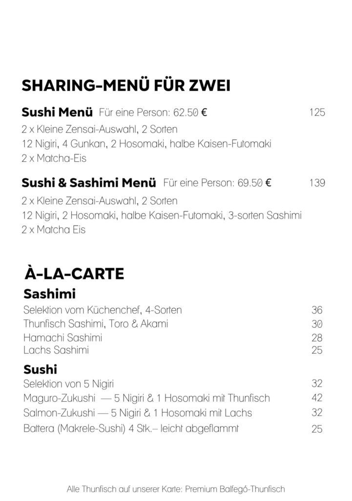 Unser Küchenchef, Hideyuki Takahashi, verfügt über mehr als 20 Jahre Erfahrung in der gehobenen japanischen Kulinarik. Er wurde in einem der renommiertesten Kaiseki-Restaurants Japans ausgebildet und arbeitete später in einem mit einem Michelin-Stern ausgezeichneten Sushi-Restaurant in Singapur. Darüber hinaus war er 4 Jahre Kochlehrer an der Tokyo Sushi Academy, Yakitori-Chefkoch in Tokio und Küchenleiter in einem japanischen Restaurant in Hongkong. Seit 7 Jahren ist er als Chefkoch in Deutschland tätig.
